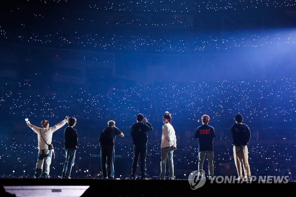 | ▲ BTS, LA 콘서트 성황리에 마쳐 (서울=연합뉴스) 미국 로스앤젤레스(LA)에서 2년 만의 대면 콘서트를 개최한 그룹 BTS가 2일(현지시간) 공연을 끝으로 '퍼미션 투 댄스 온 스테이지' 일정을 마무리했다. 방탄소년단은 지난달 27일부터 이날까지 모두 네 차례 LA 소파이 스타디움에서 전석 매진 기록을 세우며 공연을 펼쳤다. 2021.12.3 [빅히트 뮤직 제공. 재판매 및 DB금지] photo@yna.co.kr |