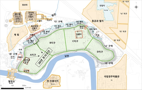 국립경주문화재연구소는 반달 모양인 월성을 서쪽부터 순서대로 A∼D지구로 나누고, A지구와 C지구를 먼저 발굴했다.