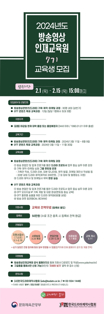 | ▲ 방송영상 인재교육원 교육생 모집 공고 [한국드라마제작사협회 제공. 재판매 및 DB 금지] |