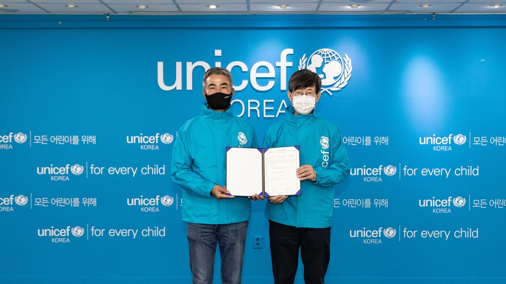 ▲ 유니세프한국위원회는 블록체인 기반 게임회사인 위메이드와 사회공헌 협약을 체결했다. 유미세프한국위는 협약에 따라 위메이드로부터 기부받은 1억원을 개발도상국 어린이들의 중단 없는 교육을 위한 교실 텐트 설치에 사용하기로 했다. (서울=연합뉴스)