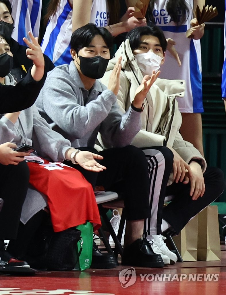 | ▲ 프로농구 직관하는 김하성과 이정후 (서울=연합뉴스) 김인철 기자 = 샌디에이고 김하성과 키움 이정후가 4일 서울 송파구 잠실학생체육관에서 열린 KBL 2022-2023 SKT 에이닷 프로농구 서울 SK 나이츠와 원주 DB 프로미의 경기를 지켜보고 있다. 2023.1.4 yatoya@yna.co.kr |