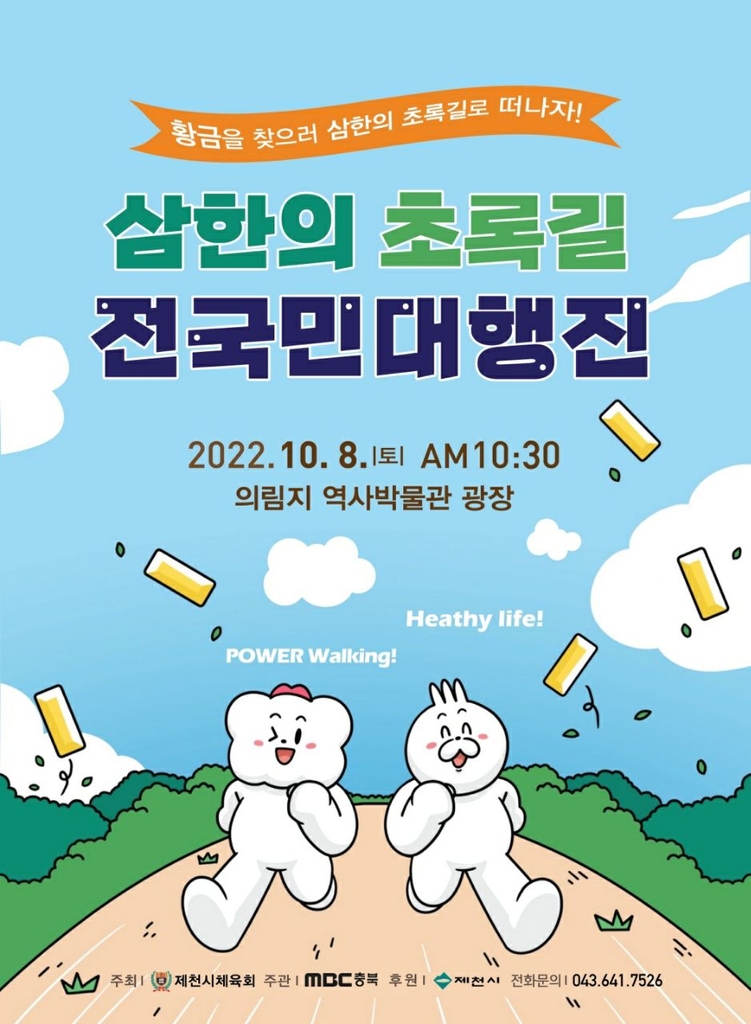 '삼한의 초록길 전 국민 대행진'으로 명명된 이번 걷기대회는 의림지 역사박물관을 출발, 청전뜰 삼한의 초록길을 왕복하는 약 6.7㎞ 구간에서 진행된다.