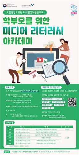 학부모를 위한 미디어 리터러시 아카데미 참가자는 25일 오후 2시부터 모집한다. 정원은 30명이다.