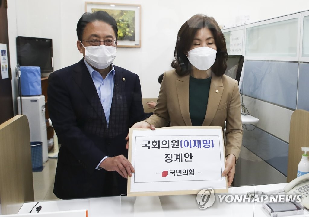 SEOUL, Oct. 14 (Yonhap) -- The ruling People Power Party (PPP) on Friday submitted a motion calling for disciplinary action against opposition leader Lee Jae-myung for holding stocks of arms companies while serving as a member of the parliamentary defense committee.