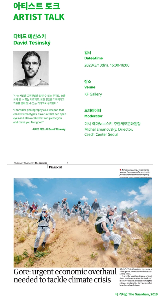 지난달 27일 개막한 KF갤러리 '오늘로부터의 세계' 전시회에는 톄신스키의 사진 17점과 체코문화원 본원에서 제작한 'SDGs: 지속 가능한 미래를 위한 혁신'이란 주제의 증강현실(AR) 작품 17점이 전시되고 있다.