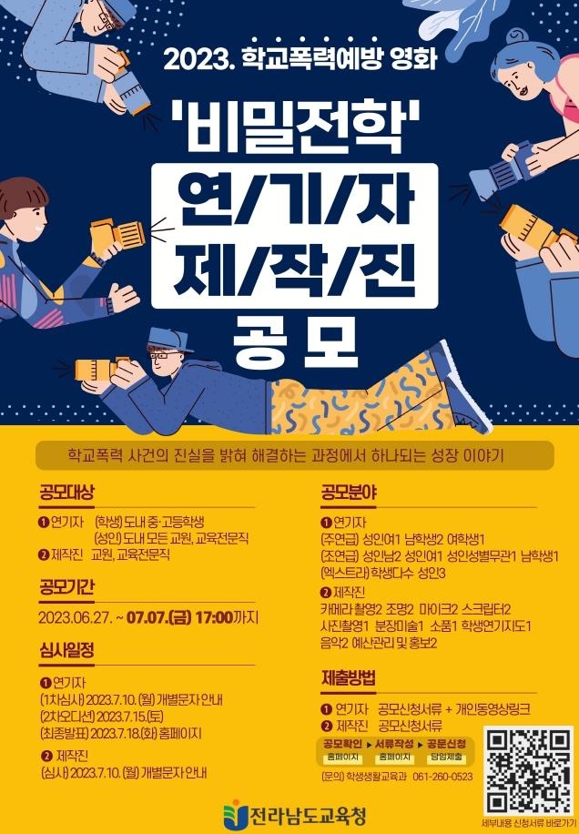 (무안=연합뉴스) 형민우 기자 = 전남도교육청이 학교폭력 예방을 주제로 한 단편영화 '비밀전학'을 만든다.