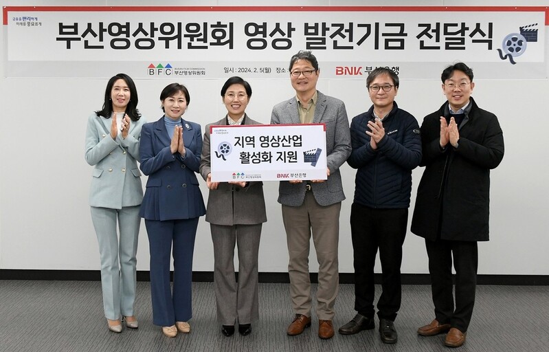 ▲ BNK부산은행은 부산영상위원회에 지역 영상산업 활성화를 위한 발전기금 4천만원을 전달했다고 6일 밝혔다. 후원금은 영화·영상 제작 시스템 체계 구축 등 지역 영상산업 발전을 위한 다양한 지원사업에 쓰일 예정이다. (부산=연합뉴스)
