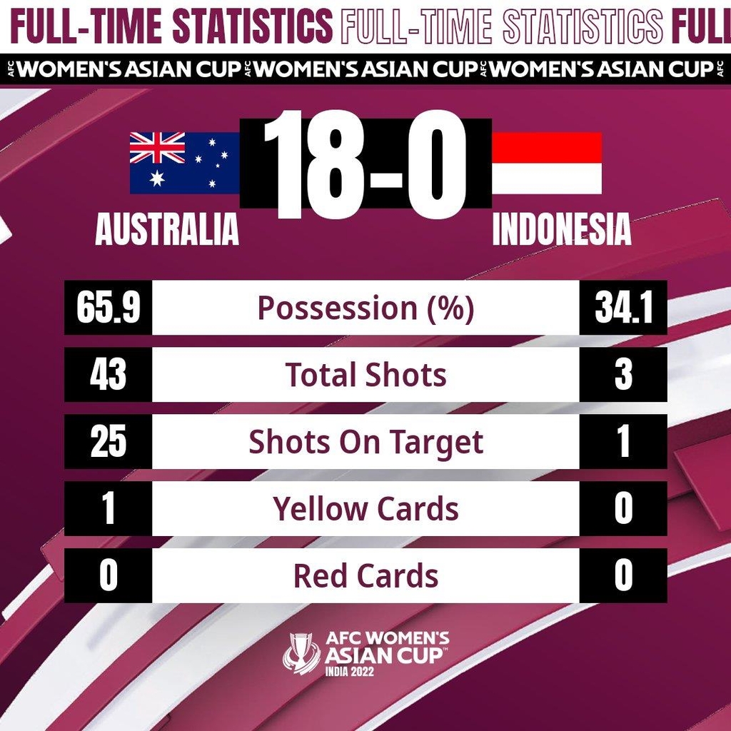 | ▲ 호주-인도네시아전 결과. [AFC 여자 아시안컵 조직위원회 트위터. 재판매 및 DB 금지] |