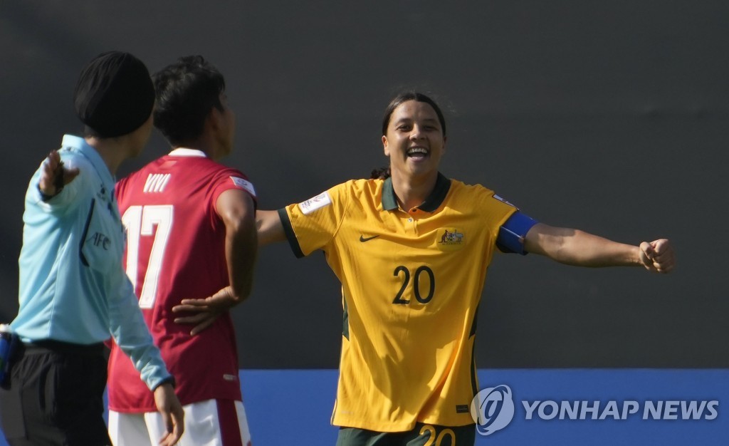 | ▲ 골 세리머니 하는 호주 여자축구 대표팀 주장 샘 커. [AP=연합뉴스] |