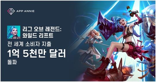 앱애니 "LoL 와일드 리프트 세계 지출 1억5천만달러 돌파"