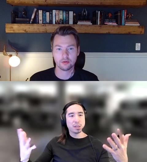 | ▲ '아케인' 공동제작자 인터뷰 라이엇게임즈의 '리그오브레전드'(LoL·롤) 세계관 기반 넷플릭스 오리지널 시리즈 '아케인'을 공동 제작한 크리스티안 링케(위)와 알렉스 이가 국내 언론과 화상 인터뷰하고 있다. 2021.11.7 [라이엇게임즈 제공, 재판매 및 DB 금지] photo@yna.co.kr |