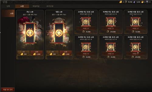 미르M의 대표적인 BM(사업 모델)은 앞서 언급한 화신, 영물 뽑기다.