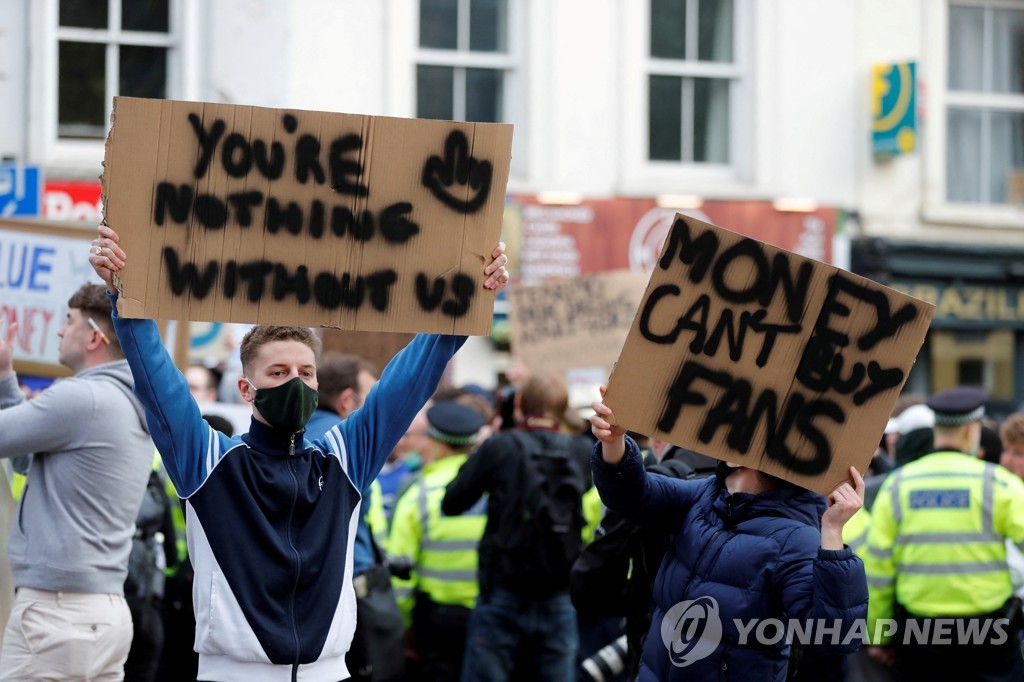 | ▲ ESL 출범에 반대하는 축구 팬들 [로이터=연합뉴스 자료사진] |