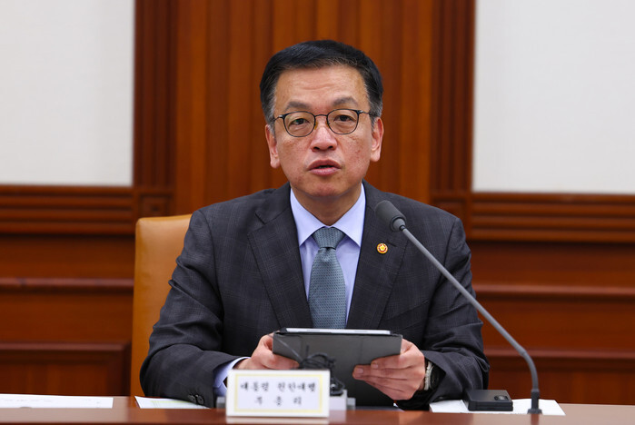 Acting President Choi Sang-mok, who concurrently serves as deputy prime minister for economic affairs and finance minister, presides over a meeting of related ministers on pending state affairs at the government complex in Seoul on Jan. 9, 2025. (Pool photo) (Yonhap)