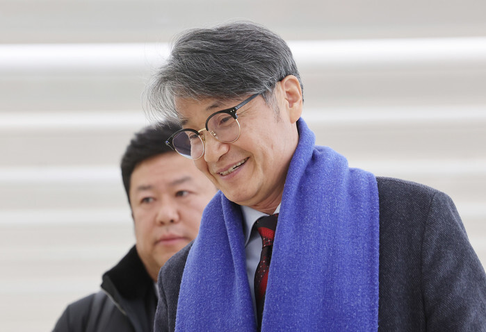 Korean American pastor Choi Jae-young, who gave gifts to former first lady Kim Keon Hee, smiles as he arrives at the office of special counsel Min Joong-ki in central Seoul on Dec. 9, 2025, to be questioned as a witness over corruption allegations involving Kim. (Yonhap)