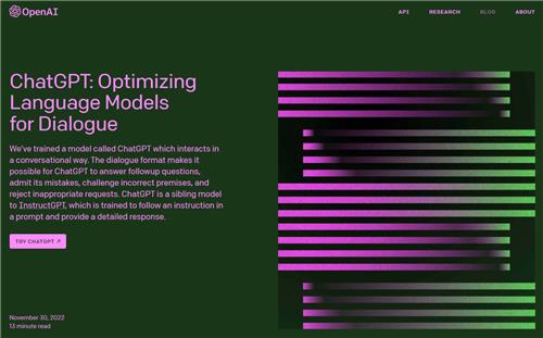 ▲ 오픈AI의 인공지능 챗봇 챗GPT [오픈AI 홈페이지 캡처. 재판매 및 DB 금지]