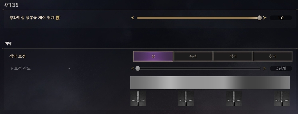 ▲ '쓰론 앤 리버티'의 광과민성·색약 보정 옵션 [쓰론 앤 리버티 게임플레이 화면 캡처. 재판매 및 DB 금지]