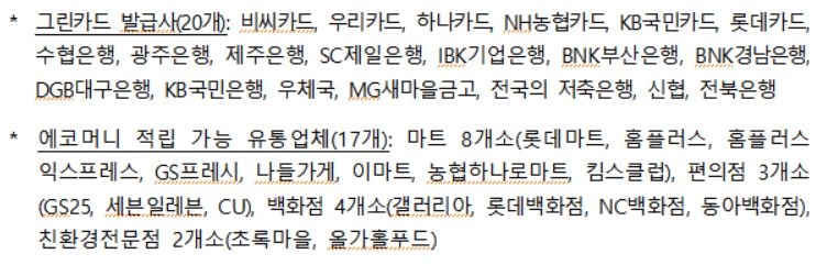 | ▲ 그린카드 발급 업체와 에코머니 적립 가능 유통업체 [농림축산식품부 제공] |