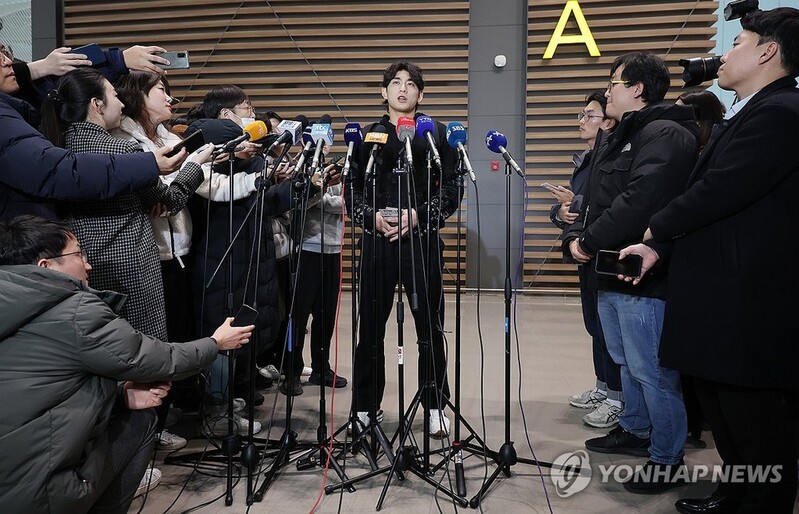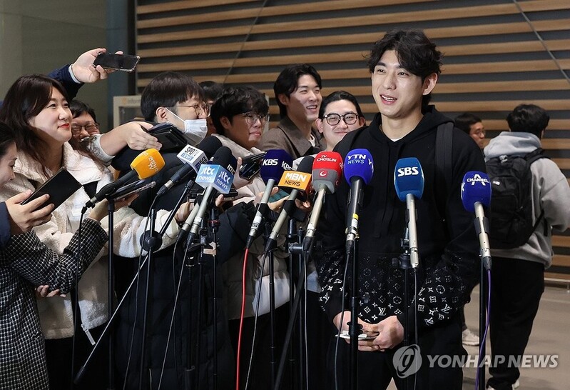 | ▲ 답변하는 이정후 (영종도=연합뉴스) 서명곤 기자 = '바람의 손자' 이정후(샌프란시스코 자이언츠)가 미국프로야구 메이저리그(MLB) 첫해 도전을 위해 1일 오후 인천국제공항 2터미널을 통해 출국하기 앞서 취재진의 질문에 답하고 있다. 2024.2.1 seephoto@yna.co.kr |