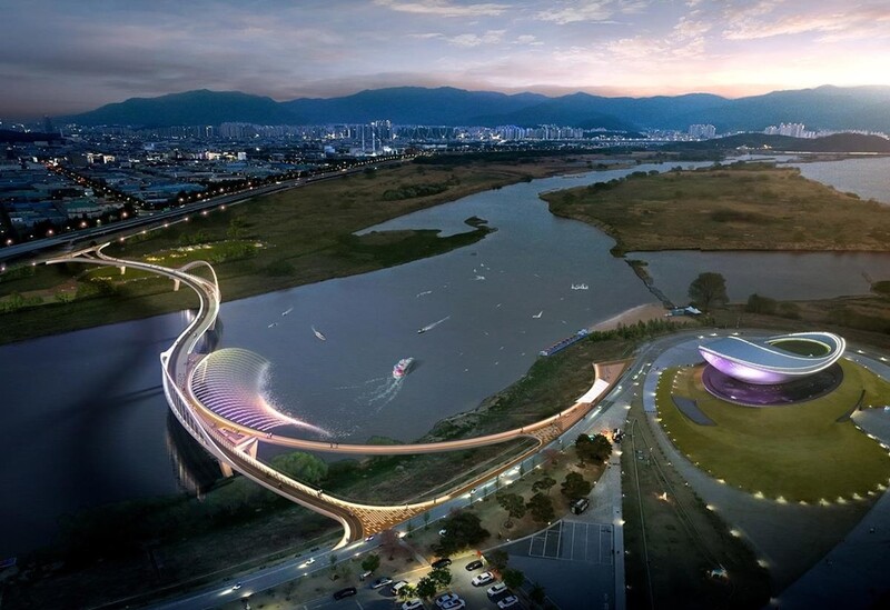 강정보에 설치된 상징 건축물 디아크 인근에 아치형 관광 보행교가 들어선다.