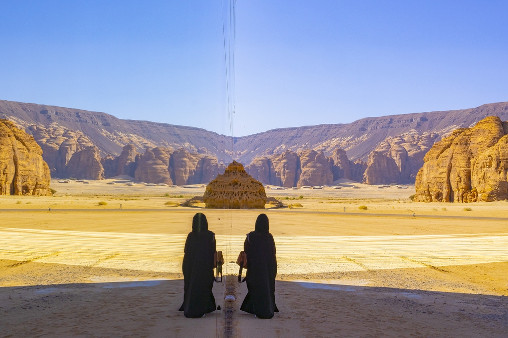 수도 리야드에서 1천100km 떨어진 알울라 지역의 사막 한가운데에서 기자가 발견한 것은 거대한 거울 같은 건물이었다.