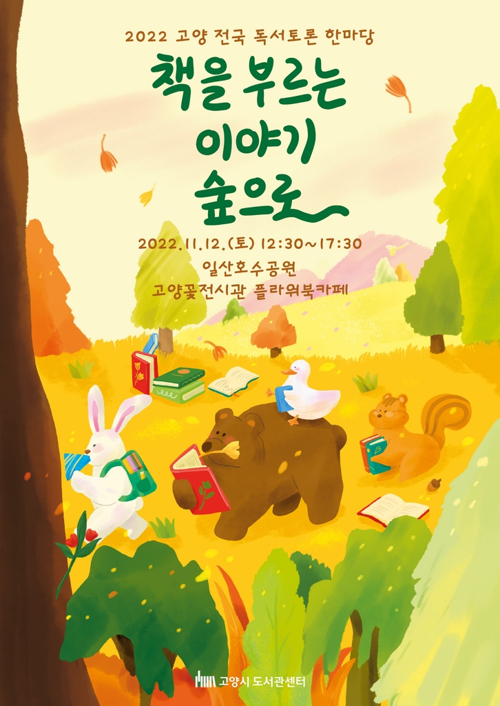 일산호수공원 고양꽃전시관에서는 다음 달 12일 '전국 독서토론 한마당'이 열려 연령·주제별 독서 모임과 서평 겨루기, 작가 만남 등이 이뤄진다.