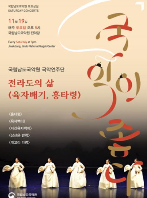 (진도=연합뉴스) 조근영 기자 = 국립남도국악원은 19일 오후 5시 국악연주단의 '전라도의 삶, 육자백이&흥타령' 공연을 펼친다.