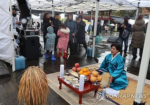 | ▲ 입춘 맞이 제주 전통 굿 (제주=연합뉴스) 고성식 기자 = 입춘을 하루 앞둔 3일 입춘굿이 열린 제주시 관덕정 마당에서 풍요를 비는 굿인 '칠성비념'이 시연되고 있다. 2024.2.3 koss@yna.co.kr |