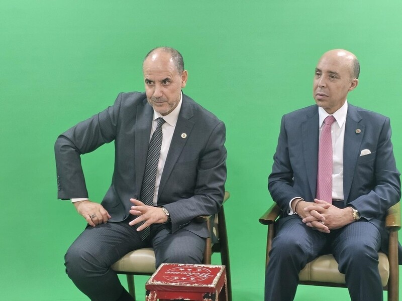 | ▲ Ahmed Abaddi (L), the secretary general of the Mohammedian League of Religious Scholars of Morocco, seated next to Moroccan Ambassador to South Korea Chafik Rachadi, speaks during an interview with Yonhap News Agency on Sept. 19, 2023. (Yonhap) |