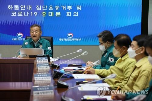 SEOUL, Dec. 7 (Yonhap) -- The government on Wednesday urged striking truckers to return to work immediately, estimating industrial losses from the two-week-long walkout to reach 3.5 trillion won (US$2.64 billion).