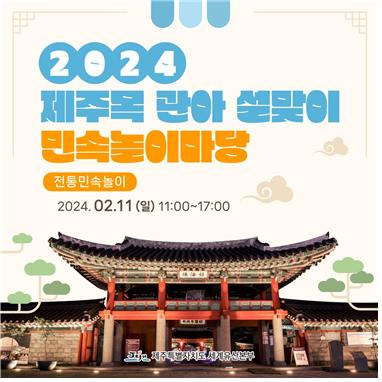 제주도 세계유산본부는 설 연휴 기간인 9일부터 12일까지 제주목관아를 무료 개방하고, 설 다음 날인 11일 오전 11시부터 오후 5시까지 설맞이 민속놀이마당을 연다.