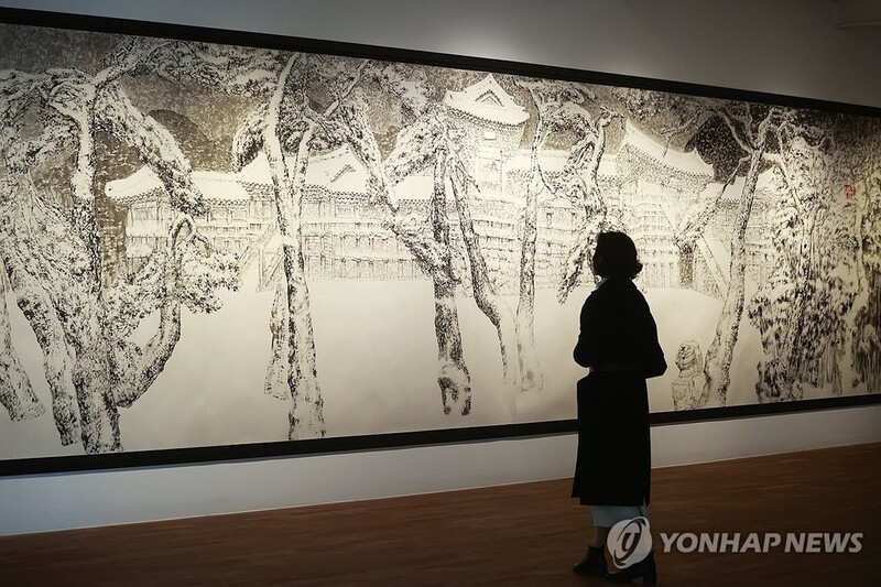 | ▲ 박대성 화백의 해외 순회 기념전 '소산비경' (서울=연합뉴스) 진연수 기자 = 2일 오후 서울 종로구 가나아트센터에서 열린 박대성 화백의 해외 순회 기념전 '소산비경(小山秘境): Sublime Beauty of Sosan'을 찾은 시민들이 전시장을 둘러보고 있다. 2024.2.2 jin90@yna.co.kr |
