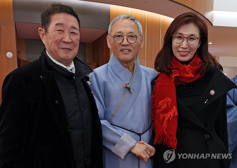 | ▲ 노소영 관장과 기념 촬영하는 유인촌 장관 (서울=연합뉴스) 유인촌 문화체육관광부 장관이 2일 서울 중구 국립극장 해오름극장에서 열린 '2024 설맞이 음악회 & 신년 인사회'에서 노소영 아트센터나비 관장과 기념 촬영하고 있다. 2024.2.2 [문화체육관광부 제공. 재판매 및 DB 금지] photo@yna.co.kr |