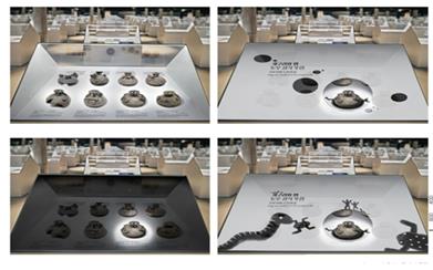 평소에는 보통 유리처럼 안에 있는 전시물을 투명하게 보여주지만 조작을 통해 전체 또는 부분이 디스플레이 화면으로 바뀌어 유물에 관련된 정보를 생생하고 입체적으로 보여준다.