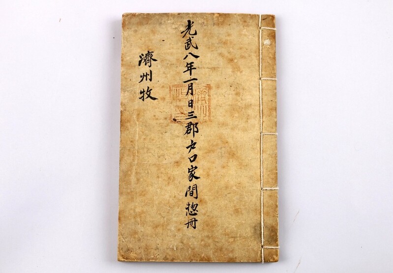 | ▲ 삼군호구가간존안책 (제주=연합뉴스) 조선 말엽인 1904년 1월 제주목과 대정·정의현의 호적상 집의 수와 식구 수, 집의 형태 등을 기록한 '삼군호구가간존안책'. 2024.2.4 [제주대학교 박물관 제공, 재판매 및 DB 금지] |