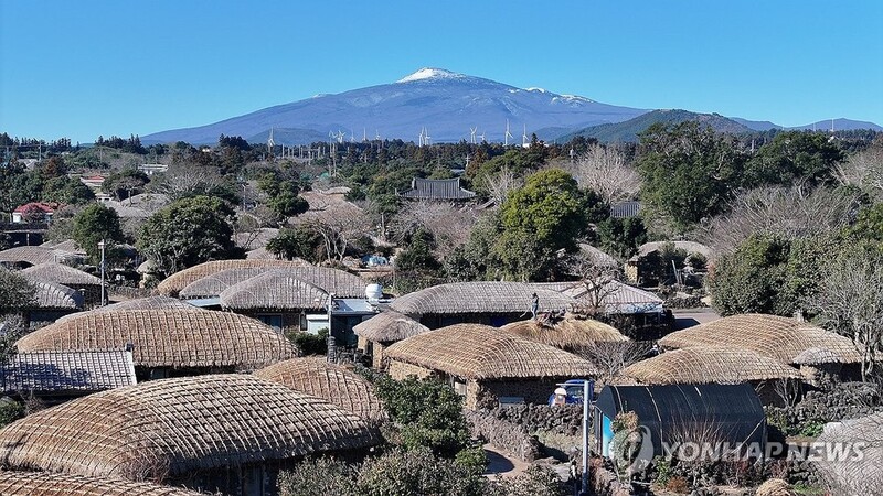 | ▲ 제주 성읍민속마을 초가지붕 잇기 '한창' (서귀포=연합뉴스) 지난 1월 16일 오전 제주 서귀포시 표선면 성읍민속마을에서 주민들이 초가 위에서 새(띠)를 덮는 지붕 잇기 작업을 하고 있다. 2024.1.16 [연합뉴스 자료사진] |