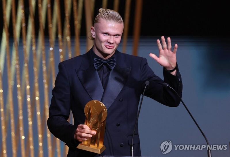 (서울=연합뉴스) 안홍석 기자 = '괴물 골잡이' 엘링 홀란(23·맨체스터 시티)이 세계 최고의 축구 선수에게 주는 발롱도르는 첫 수상에 실패했지만, 올해 최고 골잡이로는 인정받았다.
