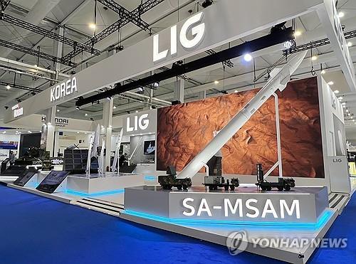 | ▲ LIG Nex1 showcases its mid-range surface-to-air missile (M-SAM) system during World Defense Show, an international defense exhibition held in Riyadh, Saudi Arabia, in this photo provided by the Korean defense firm on Feb. 5, 2024. (PHOTO NOT FOR SALE) (Yonhap) |