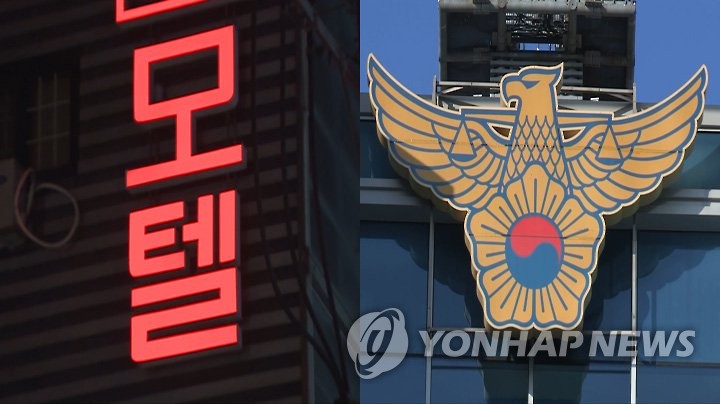 | ▲ A photo of a motel and the police's emblem, provided by Yonhap News TV (PHOTO NOT FOR SALE) (Yonhap) |