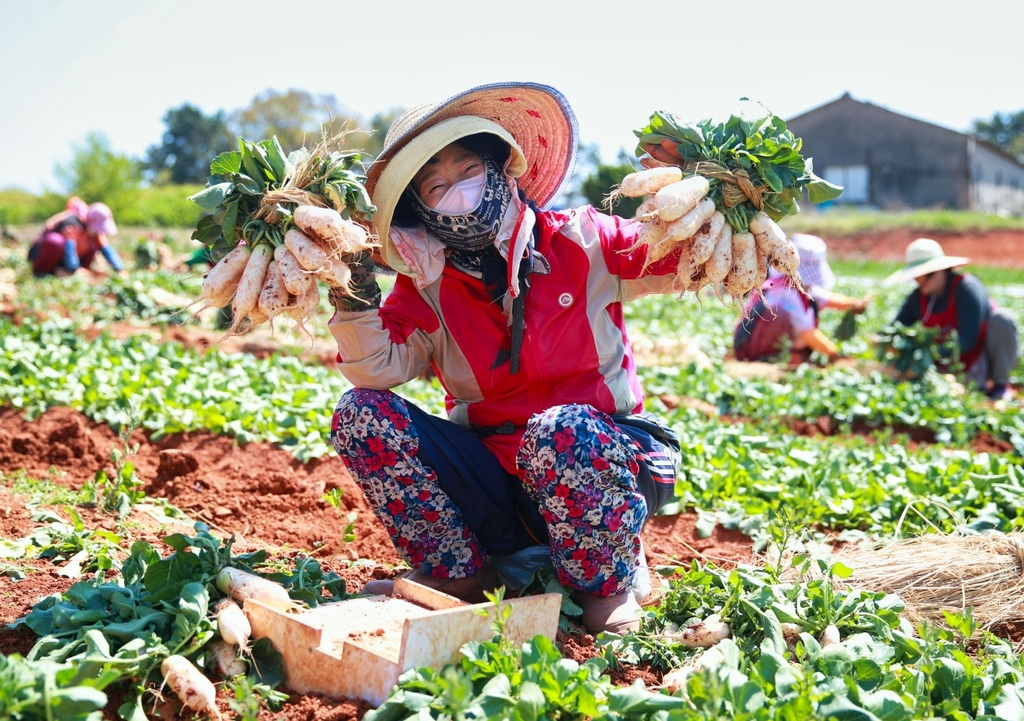 | ▲ 태안읍의 밭에서 총각무 수확하는 농민들 [태안군 제공. 재판매 및 DB 금지] |