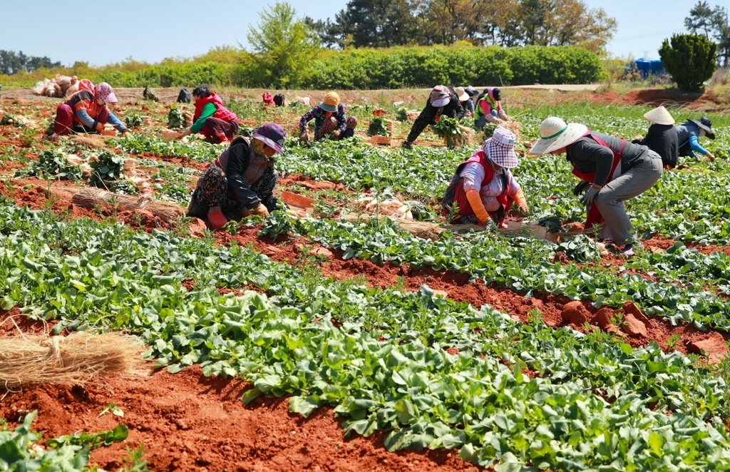 (태안=연합뉴스) 아삭아삭한 식감이 일품인 충남 태안 황토 총각무가 본격적으로 출하되면서 농민들이 봄 들녘에서 바쁜 하루를 보내고 있다.