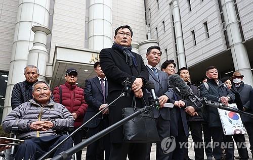 | ▲ South Korean victims of Japan's wartime forced labor and their lawyers hold a news conference at the Seoul High Court in Seoul on Feb. 1, 2024, after the court ordered a district court to retry their case. (Yonhap) |