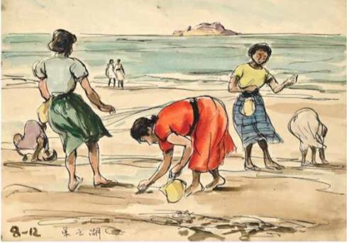 해변에서 한가롭게 시간을 보내는 여인들과 주변 판잣집의 평화로운 풍경이 그려진 이 작품은 전후 한국의 모습을 투영하고 있다.