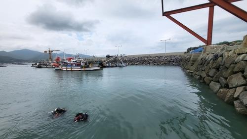 | ▲ Police divers search for Cho Yu-na, a 10-year-old, and her parents near a dock on the southwestern island of Wando on June 26, 2022, in this photo provided by the Wando Coast Guard. (PHOTO NOT FOR SALE) (Yonhap) |