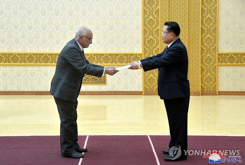 The letter of credence was received by Choe Ryong-hae, chairman of the Standing Committee of the Supreme People's Assembly, on Wednesday upon the authorization of the North's leader, it said.