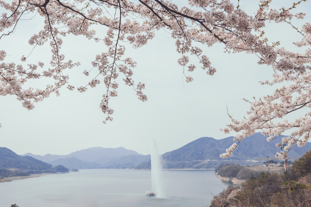 | ▲ 제천 청풍호 수변분수와 벚꽃 제천시 제공. 재판매 및 DB 금지 |