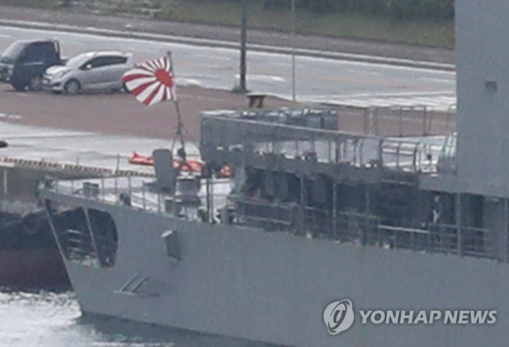 As widely expected, the Japan Maritime Self-Defense Force's warship arrived with the so-called Rising Sun flag hoisted. Critics have pointed out the image could trigger a historical controversy as the flag is seen as symbolic of Japan's past militarism.