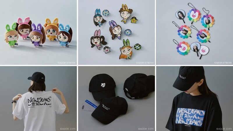 히로시 후지와라가 한글, 영어, 일본어로 쓴 뉴진스의 팀명과 멤버 이름이 박힌 티셔츠, 모자, 백팩 등 스트리트 패션 아이템도 판매한다.