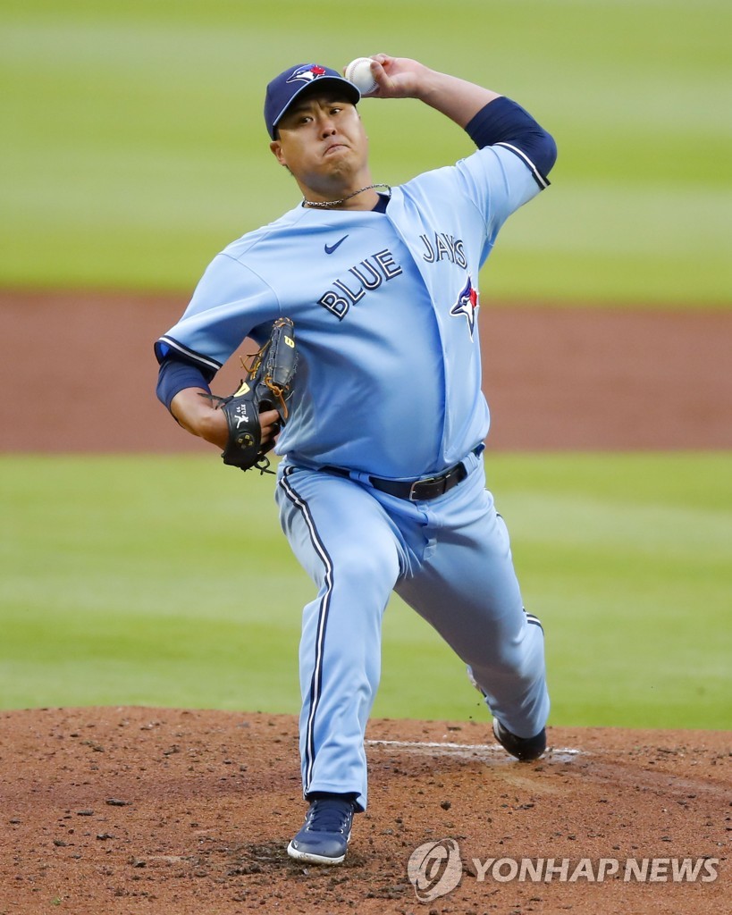| ▲ In this Getty Images photo, Ryu Hyun-jin of the Toronto Blue Jays pitches against the Atlanta Braves in the bottom of the second inning of a Major League Baseball regular season game at Truist Park in Atlanta on May 12, 2021. (Yonhap) |