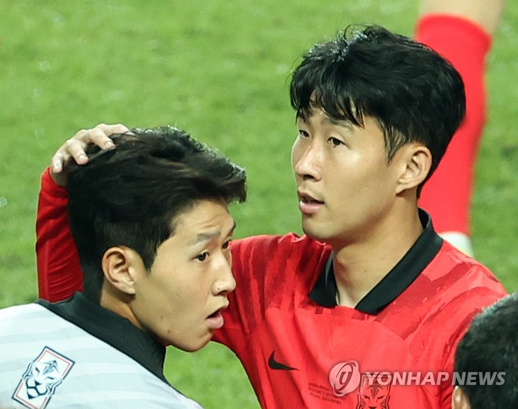| ▲ 손흥민과 이강인 (서울=연합뉴스) 임헌정 기자 = 지난 9월 27일 오후 서울 마포구 서울월드컵경기장에서 열린 한국 대 카메룬 축구 대표팀의 평가전이 끝난 뒤 손흥민이 이강인을 쓰다듬고 있다. 2022.9.27 kane@yna.co.kr |